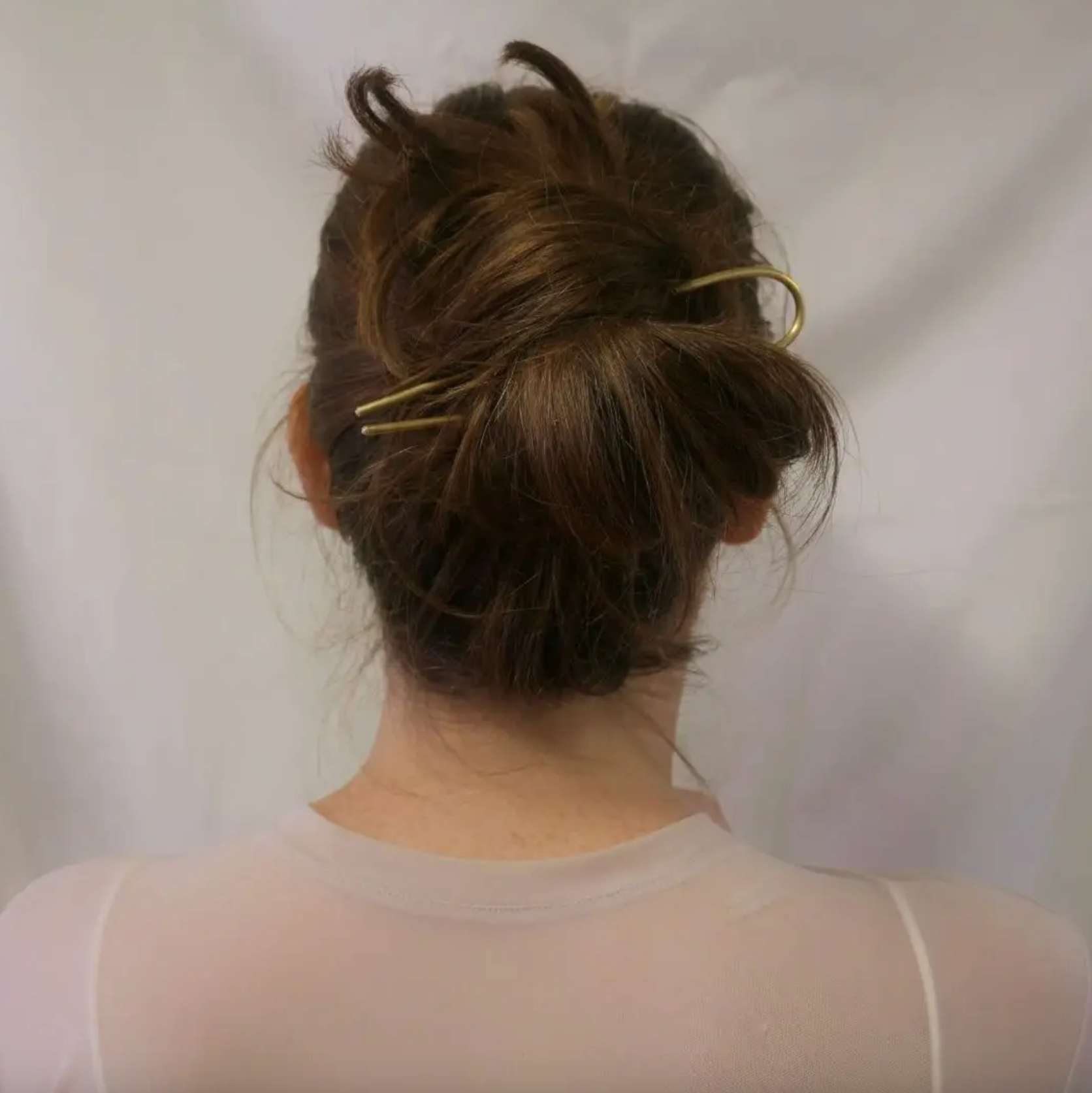 Small: Good for shorter and/or light weight hair or half up with various lengths/thickness. Ideal for buns less then 3" in diameter 3.5 inch total length Solid 10 gauge brass (2.6mm)