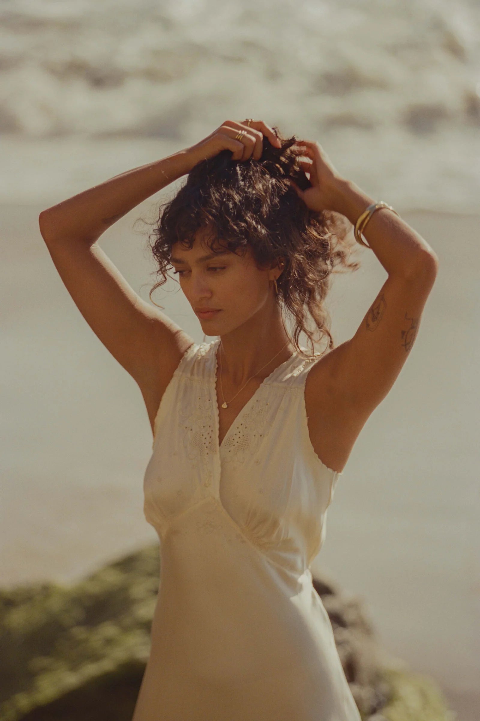 Inspired by the array of colors found on the inner layer of the seashell, this dainty charm necklace is personalized with a moonstone.